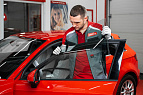 Перед заменой стекла, специалист подбирает новое по требованиям автопроизводителя и маркировке. После этого мастер разбирает облицовку двери, демонтирует старое стекло, проверяет работоспособность механизма подъемника, очищает внутренние полости двери от стекла и мусора. Устанавливает новое стекло, проверяет работу всех механизмов, собирает облицовку двери обратно и делает контрольную проверку работы стеклоподъемника.